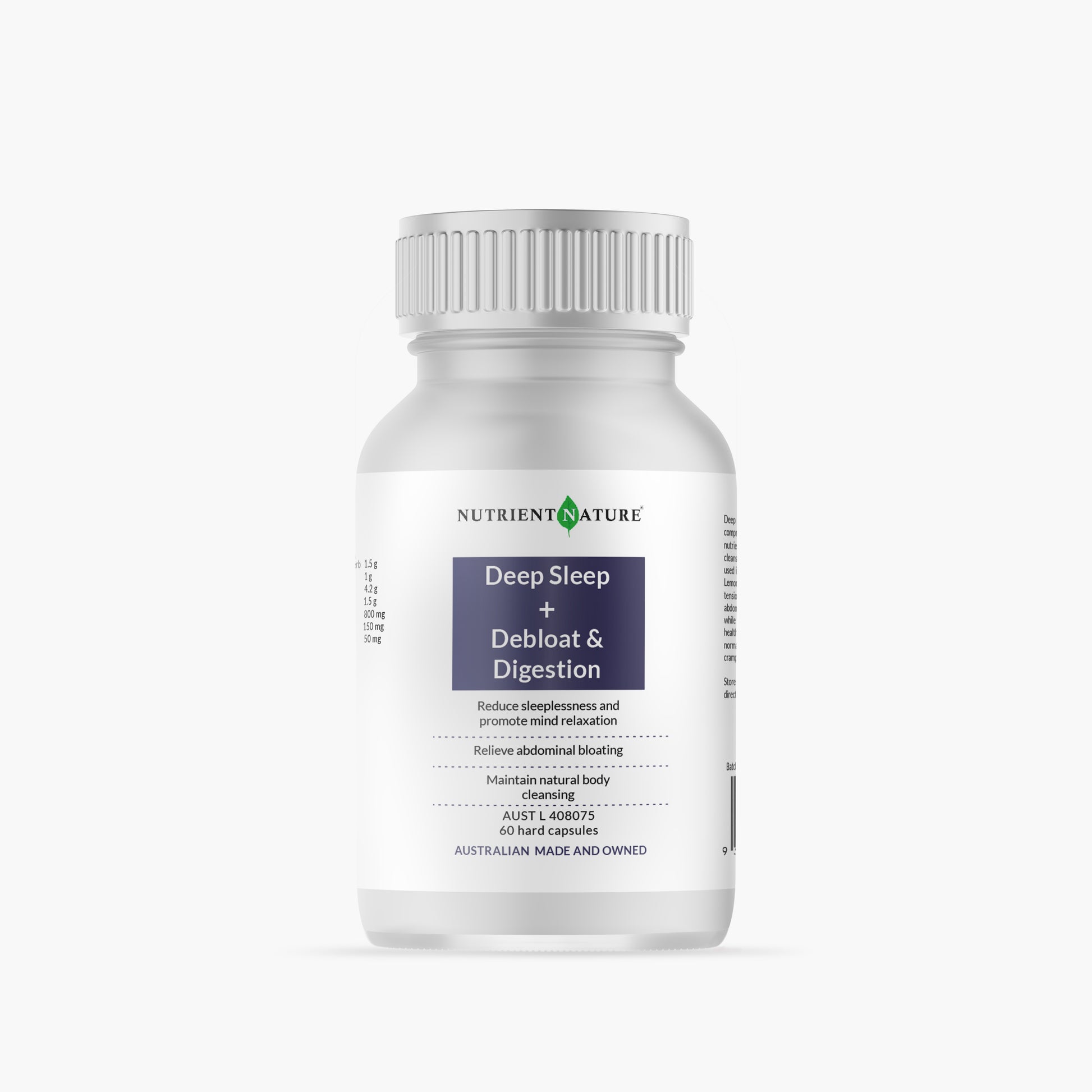 Deep Sleep + Debloat & Digestion provides a comprehensive formulation combining 7 essential nutrients to support your sleep and natural body cleansing and detoxification processes. Traditionally used in Western herbal medicine, Passion flower and Lemon balm support restful sleep and relieve nervous tension & symptoms of stress, Fennel helps relieve abdominal bloating. Milk thistle supports liver health, while Turmeric supports gastrointestinal system health and relieves inflammation. Magnesium supports normal muscle function and helps reduce muscle cramps. Taurine helps the body digest fats.